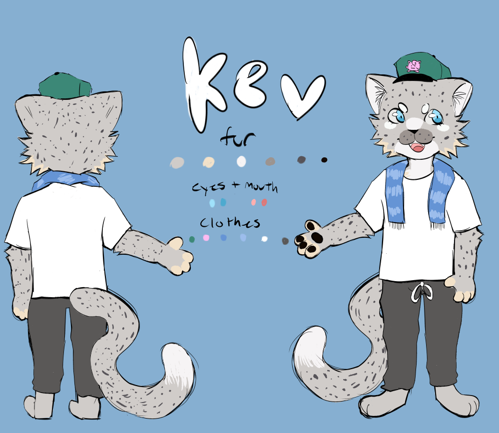 My first fursona, designed by my friend blayz. Basically a representation of me as a snow leopard, even wearing my hat and scarf that I wear almost everywhere. I love getting art of him and I love to give stickers away, just ask if you ever see me irl